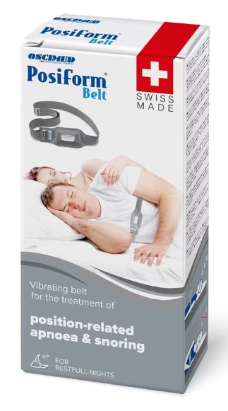 Posiform kuorsauksen estovyö on värisevä hoitolaite, joka ehkäisee selinmakuuasennossa syntyvää kuorsausta sekä lievää ja keskivaikeaa asentouniapneaa.