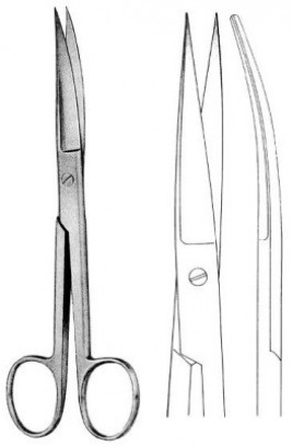 Käyrät sakset, kärki terävä/terävä, pituus 13 cm.