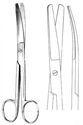 Sakset, käyrät, kärki tylppä/tylppä, pituus 13 cm.